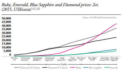 Emeralds in sizes of 2 carats and above still have long ways to grow, against ruby, sapphire and diamonds.